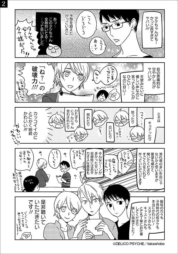 耳を澄ますと、「いま、拾がキスした」「タケがミネの○○に××した」「ミネが拾とタケに……!」と細かく演じわけをしていらっしゃることがわかるかと思います!